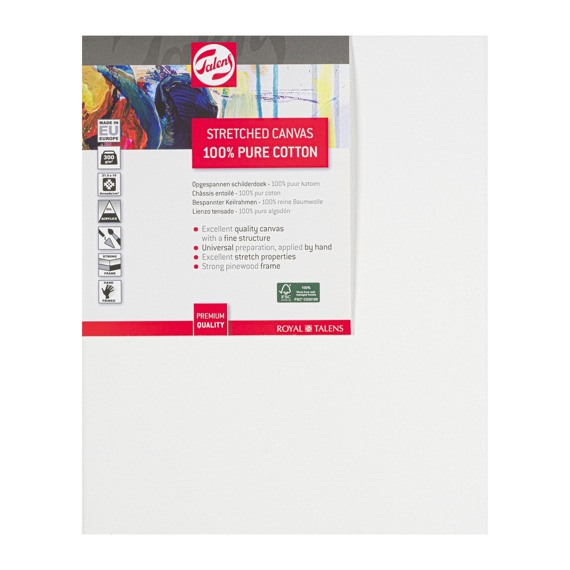 A quality stretched canvas made from 100% 300gsm cotton, primed and ready to start painting. Ideal for painting with acrylic and oils, and water-mixable oil paint.