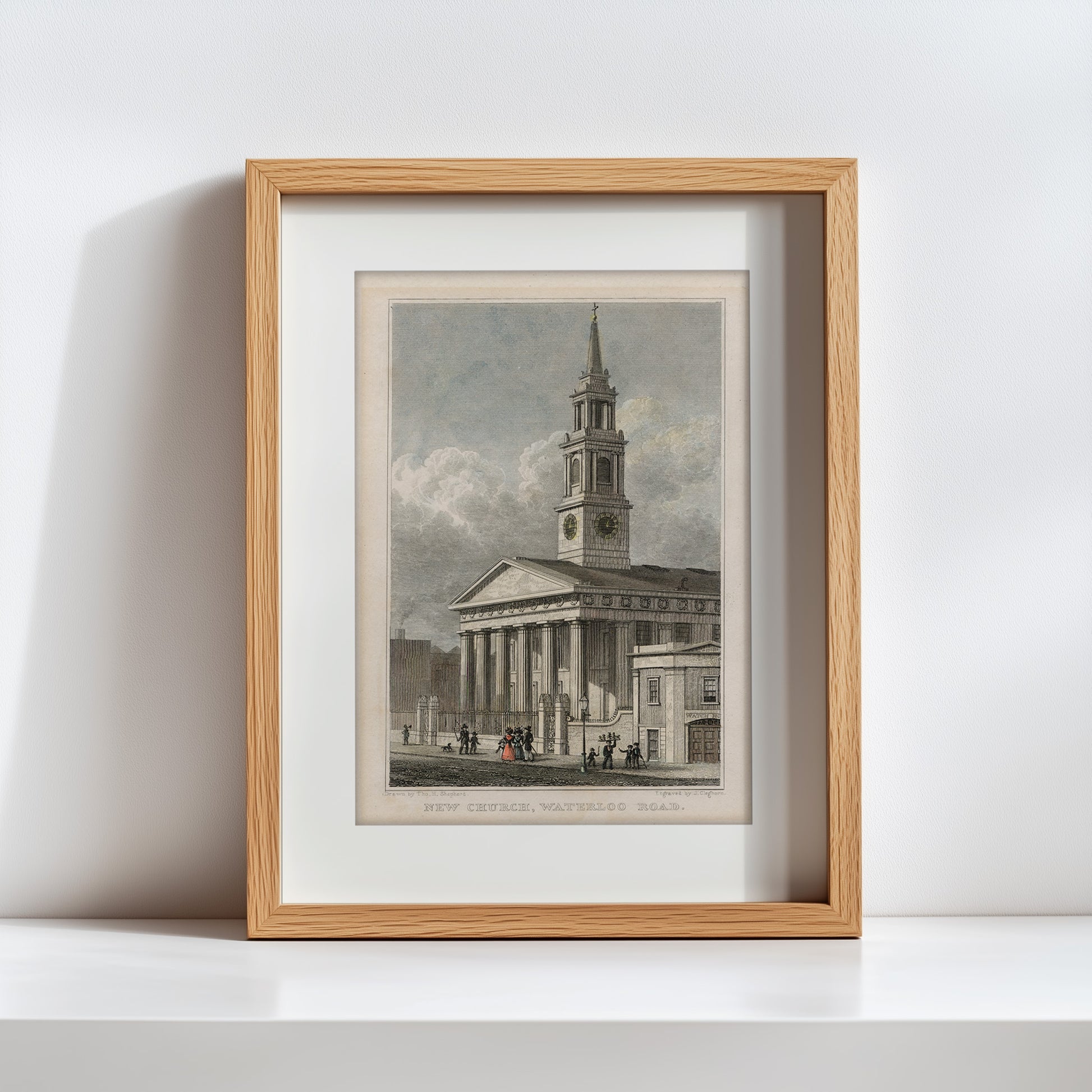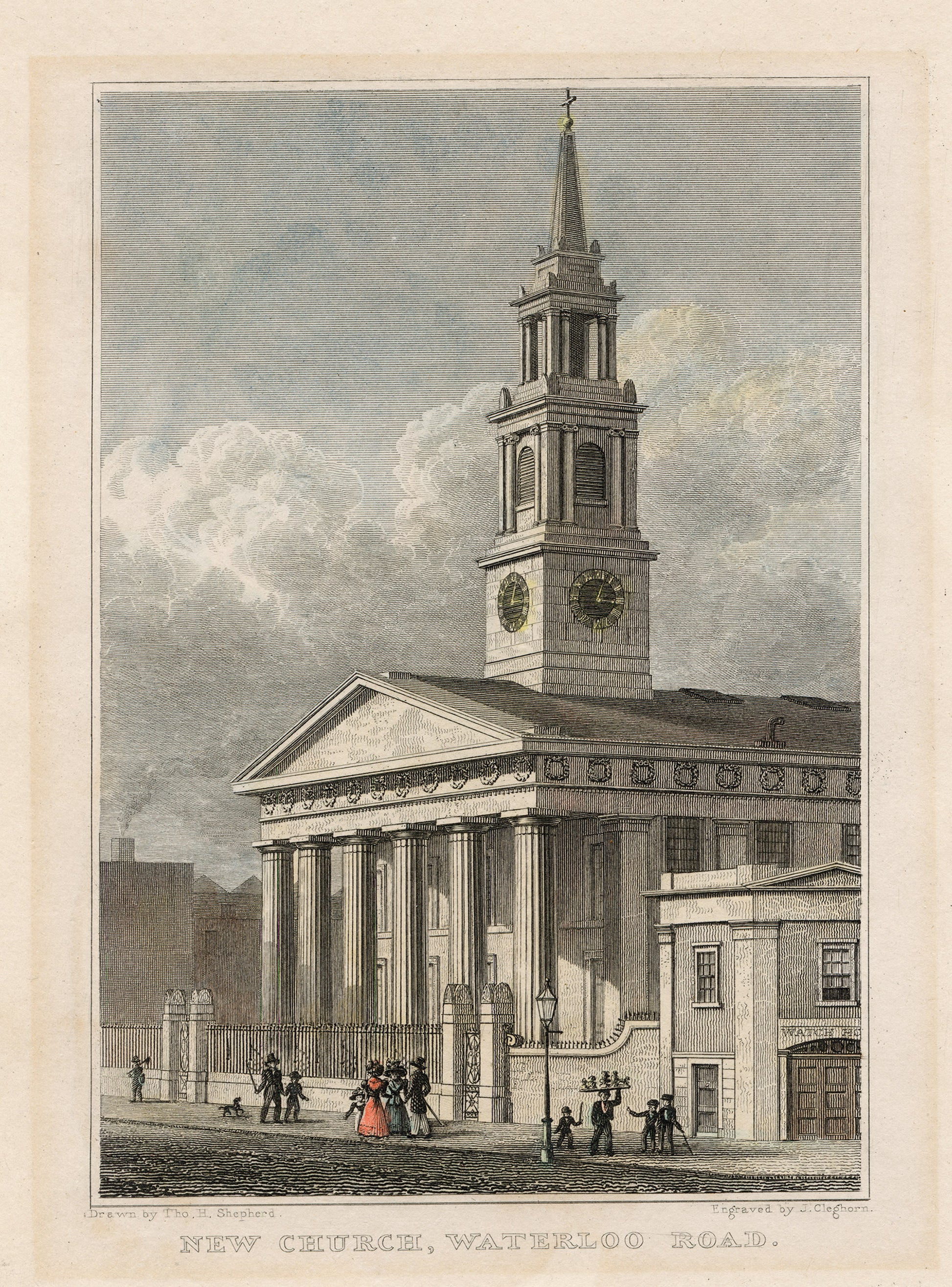 The church is located in Waterloo, opposite the London IMAX, close to Waterloo station and the Waterloo campus of King's College London. In 1818, when the country was settling down into a period of peace after the Napoleonic Wars and the population was beginning to expand rapidly, Parliament decided to allocate a sum for the building of a church at the end of Waterloo bridge.
