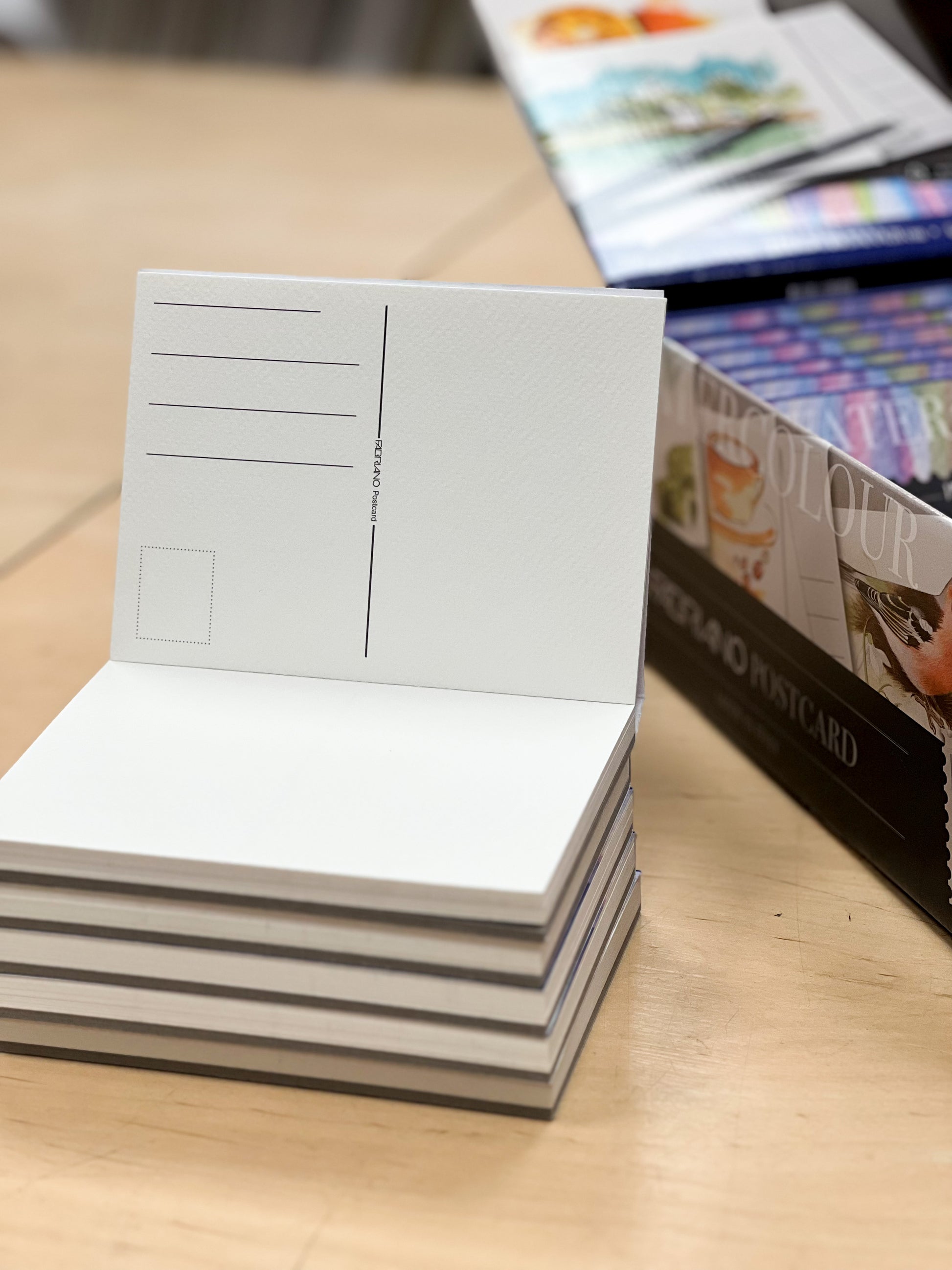 An ideal small watercolour pad for beginners that can fit into a pocket.  The reverse has postcard markings making it ideal for keep notes from trips.  Use with watercolour, gouache, acrylic, ink, pencil and mixed media.